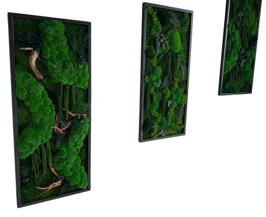Dieses Set ist besonders geeignet für Treppenhäuser, Flure oder als zentrales Moosbild groß im Moosbild Wohnzimmer. Die Anordnung als 3er-Serie ermöglicht eine beeindruckende Wandgestaltung, die optisch den Raum verlängert und aufwertet. Das Moosbilder Set dient als stilvoller und umweltfreundlicher Blickfang.