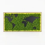 Exklusive Weltkarte aus Islandmoos mit Holzkontinenten & LED-Rahmen