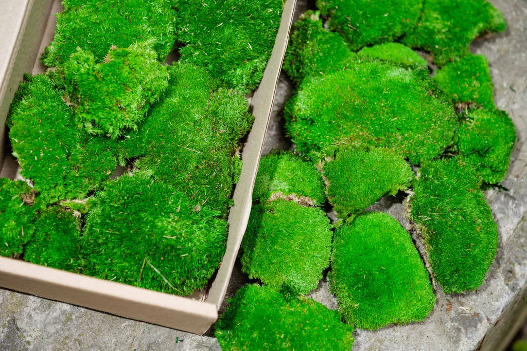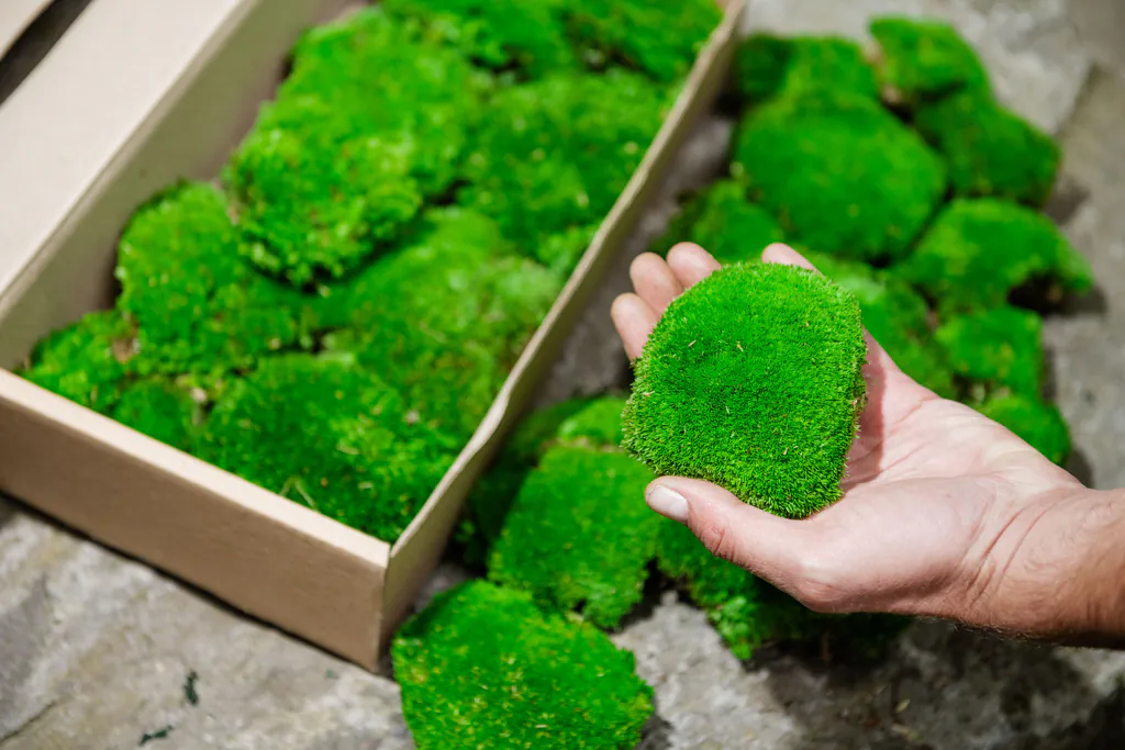 Moos stammt aus den Wäldern Nordeuropas und wird sorgfältig von Hand gepflückt. Nach dem Pflücken wird das Moos mit einem umweltfreundlichen Konservierungsmittel behandelt, das dafür sorgt, dass das Moos seine Farbe und Textur behält, ohne dass Wasser oder Nährstoffe benötigt werden.