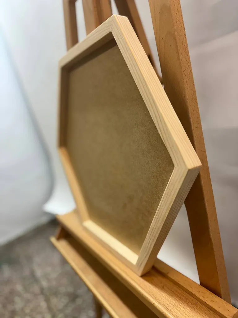 Entdecken Sie unsere stilvollen Holzrahmen in sechseckiger Form, perfekt für Moosbilder und andere kreative Wandkunstwerke.
