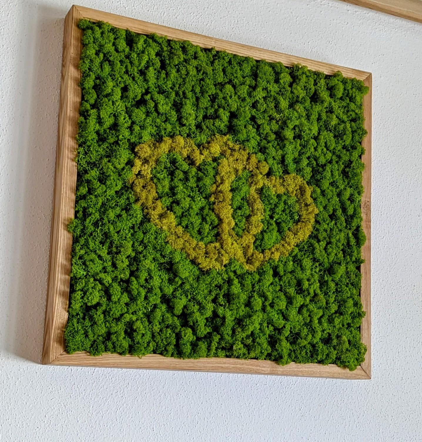 Dadurch wird das Wandbild aus Moos zu einem flexibel anpassbaren Kunstwerk, das sich in jedes Interieur einfügt. Ob kräftige Kontraste oder harmonische Farbabstimmungen – Ihr persönliches Moosherz wird zu einem echten Blickfang und zugleich Ausdruck Ihrer eigenen Stilvorstellungen.