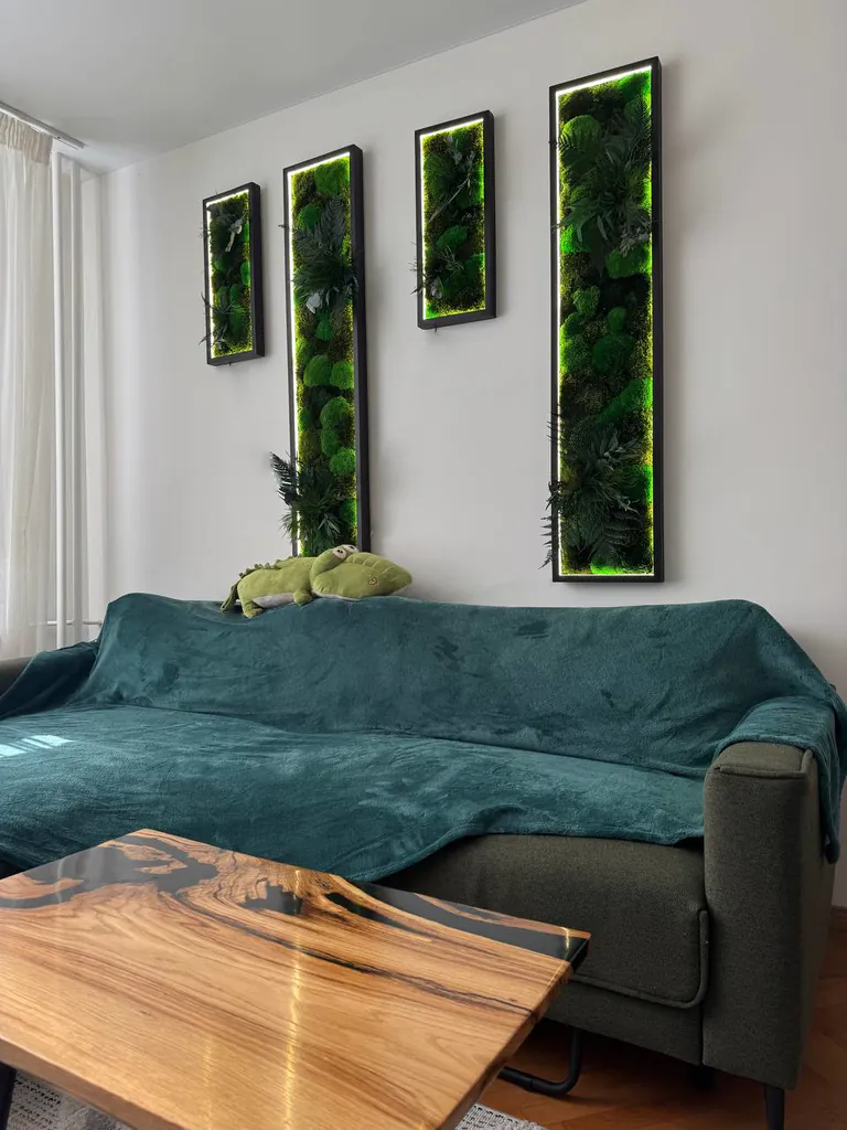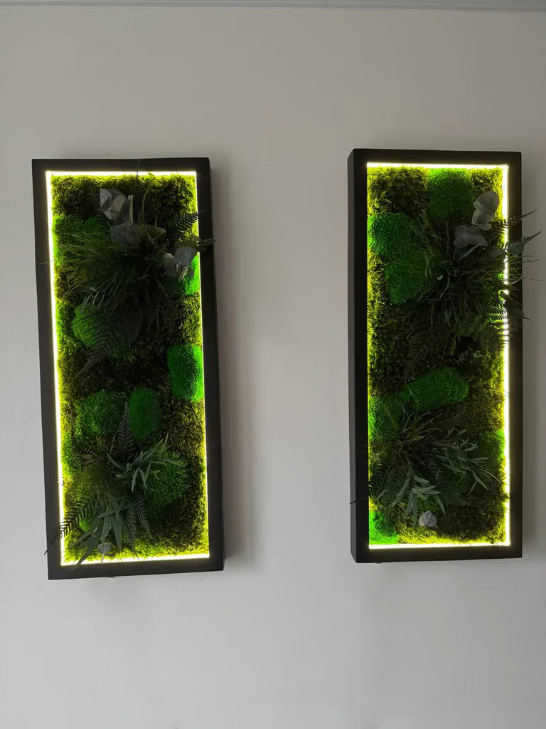 Unsere Moosbilder sind mehr als nur Dekoration; sie sind ein Ausdruck von Eleganz und natürlicher Schönheit. Jedes Bild wird handgefertigt, um sicherzustellen, dass es zu einem einzigartigen Kunstwerk wird, das Ihrem Raum Persönlichkeit verleiht. Die Kombination von Moos und LED-Beleuchtung erzeugt eine stilvolle, moderne Atmosphäre, die sowohl im privaten als auch im professionellen Bereich perfekt zur Geltung kommt.
