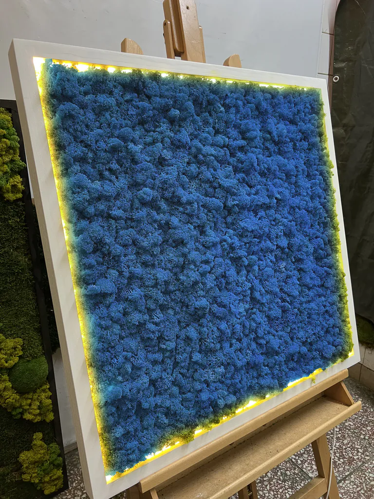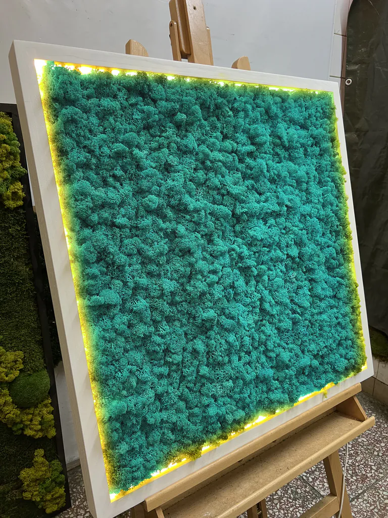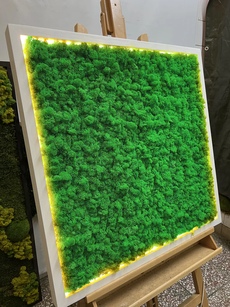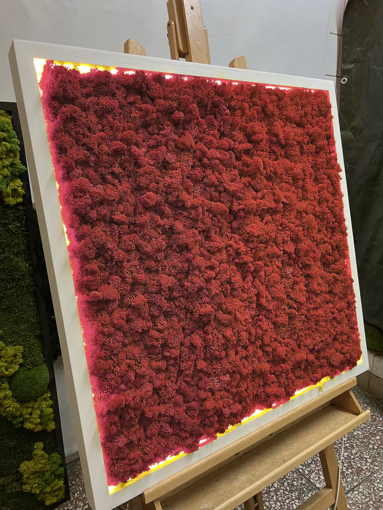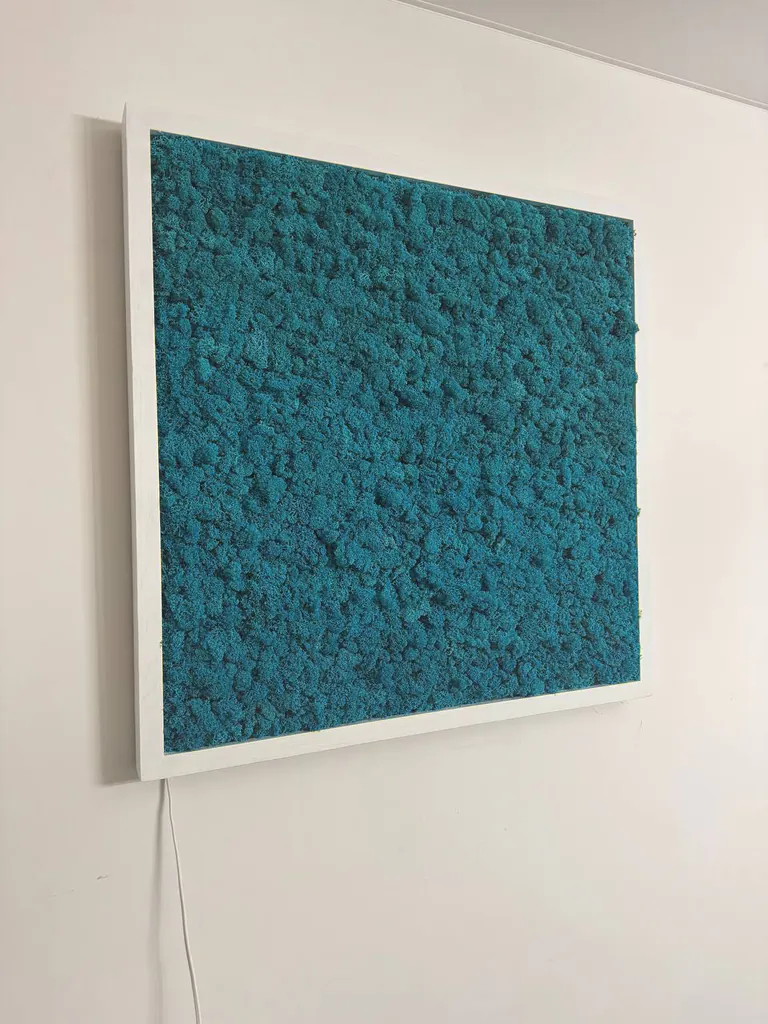 Unsere Moosbilder mit Islandmoos und LED Beleuchtung sind in verschiedenen Farben und Größen erhältlich. Je nach Einrichtungsstil können Sie zwischen natürlichen Grüntönen oder modernen Farbakzenten wie Weiß, Grau oder Violett wählen. Auch die Art der LED-Beleuchtung kann individuell angepasst werden – z. B. warmweiß oder neutralweiß.