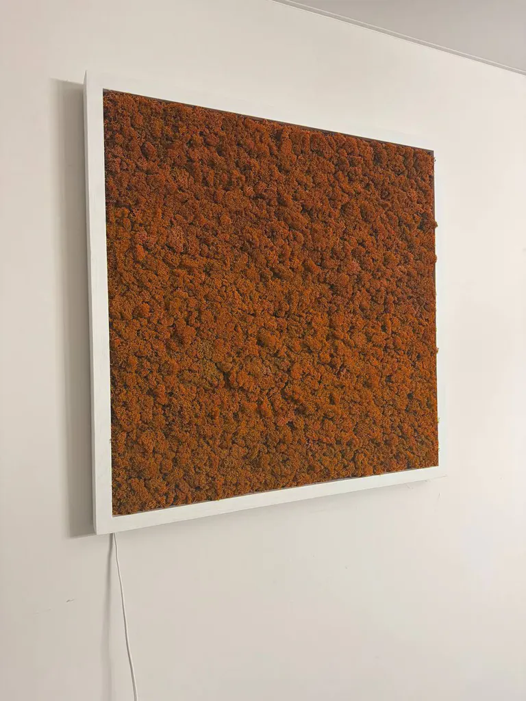 Die integrierte LED Beleuchtung hebt die organische Struktur des Islandmooses hervor und verleiht dem Bild eine besondere Tiefe. Das Licht sorgt für ein stimmungsvolles Ambiente – perfekt als Akzentbeleuchtung in modernen Wohnräumen, Fluren oder Geschäftsräumen.