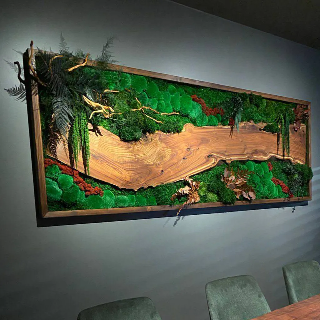 Ein Moosbild nach Maß ist ein individuell angefertigtes Kunstwerk aus konserviertem Moos. Es wird speziell nach den von Ihnen gewünschten Maßen hergestellt, sodass es perfekt in Ihren Raum passt.