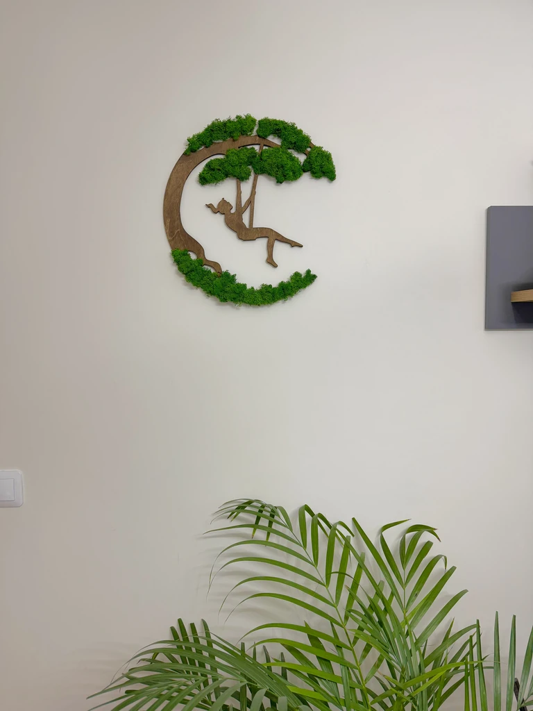 Suchen Sie nach einem besonderen Blickfang, der perfekt zu Ihrem Stil passt? Das Moosbild „Mädchen auf Schaukel“ von Ekomoss ist ein handgefertigtes Kunstwerk, das wir ganz nach Ihren Wünschen anpassen. Diese exklusive Mooskunst verbindet eine elegante Holz-Silhouette mit echtem, konserviertem Moos zu einem zeitlosen Design-Objekt für Ihren Innenraum.