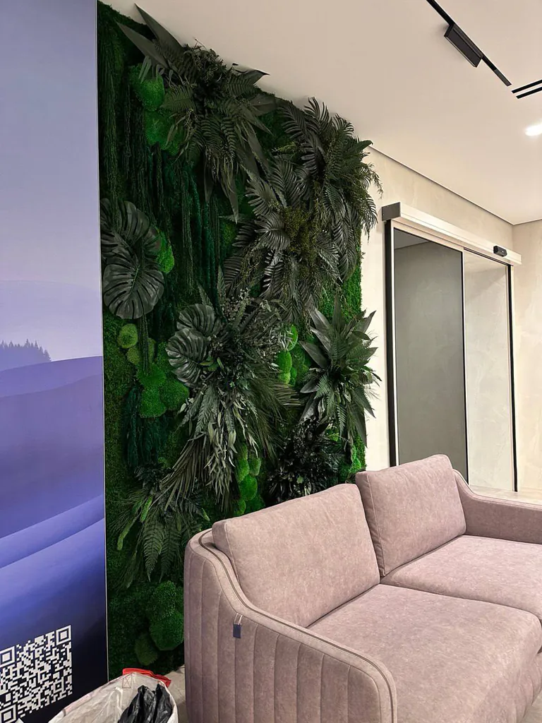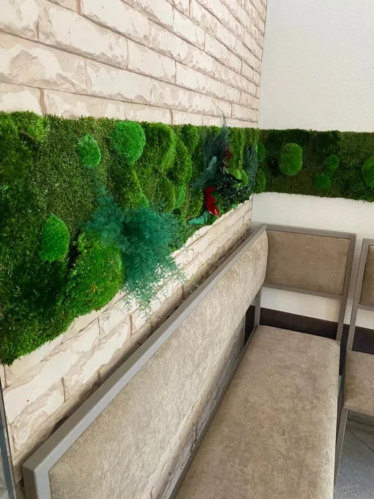 Im Vergleich zu einer Pflanzenwand aus künstlichen Materialien bieten wir eine stilvolle Pflanzenwand mit natürlichen Farben und Strukturen, die kaum von echten Pflanzen zu unterscheiden ist. Wir nutzen keine hochwertigen künstlichen Pflanzen, sondern setzen auf konservierte Moose und Pflanzen. Dies ist die natürliche Weise, um den Innenbereich zu begrünen, und bietet eine authentische natürliche Wandbegrünung.