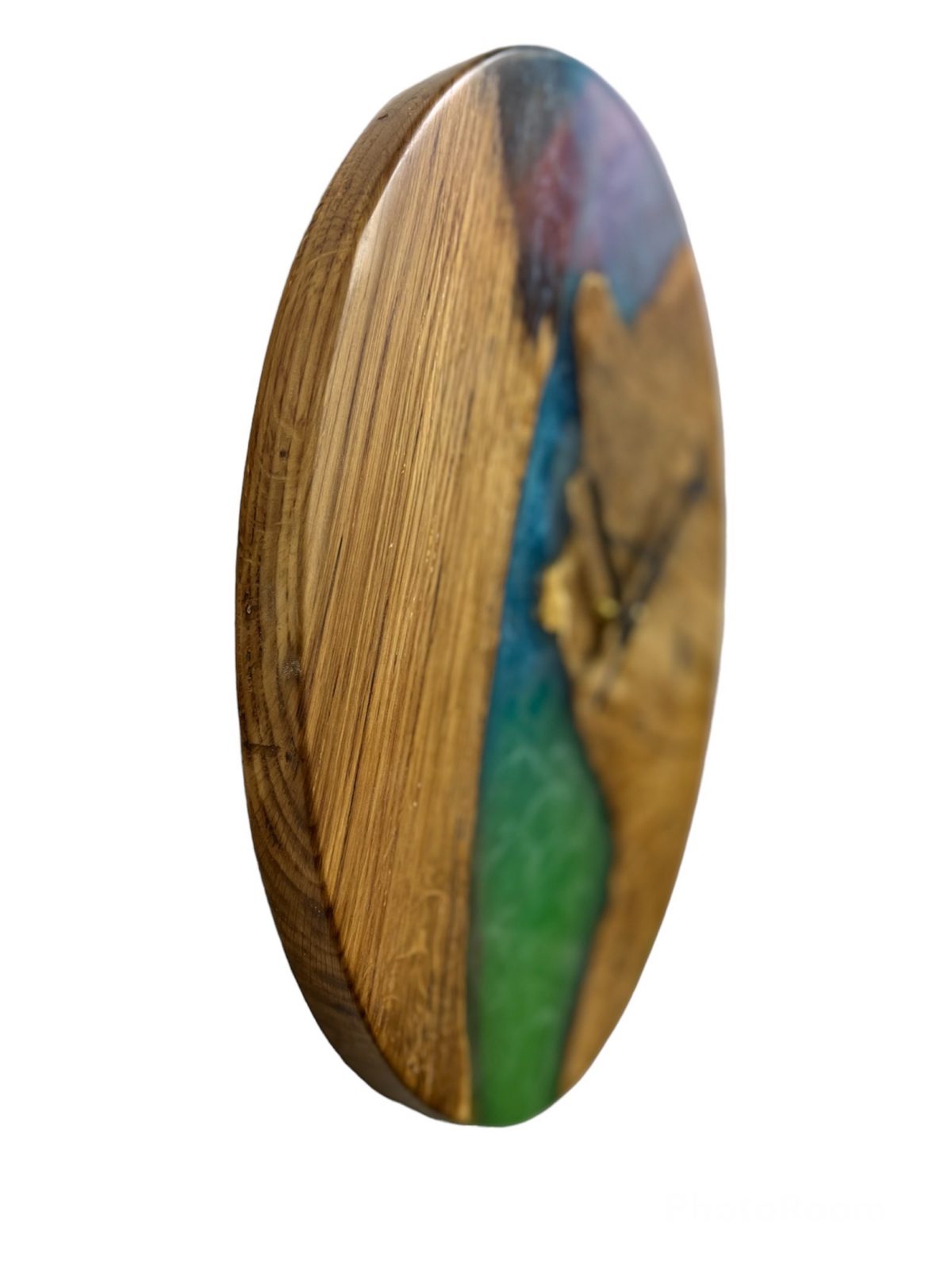 Runde Wand Holzuhr aus massiver Eiche mit Epoxy