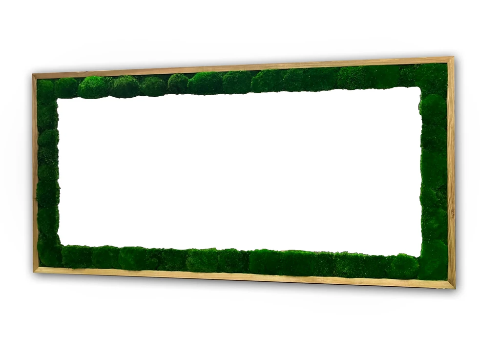 Der Kugelmoos (Bolmos) auf der Innenseite des Rahmens ist eine wunderbare Ergänzung zu diesem Spiegel in Rahmen mit Kugelmoos. Das natürliche und grüne Material verleiht dem Ganzen einen Hauch von Frische und Lebendigkeit und verleiht dem Spiegel mit Rahmen und Bolmos ein einzigartiges und auffälliges Aussehen. Der Bolmos ist außerdem langlebig und pflegeleicht, was ihn zur idealen Wahl für diejenigen macht, die eine schöne und praktische Dekoration für ihr Zuhause oder Büro suchen.